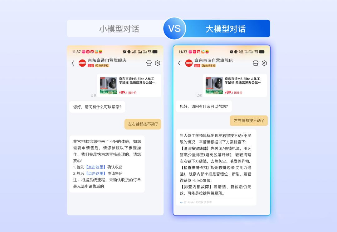 京东的AI电商则更偏向“全链路”,构建面向用户与商家的双重AI体系。面向消费者,京言AI导购和升级后的拍照购等功能提升了购物决策效率;面向商家,也有京小智这种客服Agent发挥重要作用。