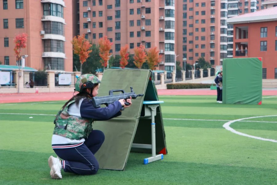 六年级学生首先听取了生动的国防教育报告。随后,是激动人心的CS枪战模拟环节。36名学生英姿飒爽,分成两队在模拟战场上展开激烈“交锋”。这不仅是一场体力与反应的较量,更是一次深刻的团队协作与战术策略的实践课。学生们在“战斗”中体验了纪律的重要性、协作的必要性,直观感受到了军事技能的挑战与魅力。
