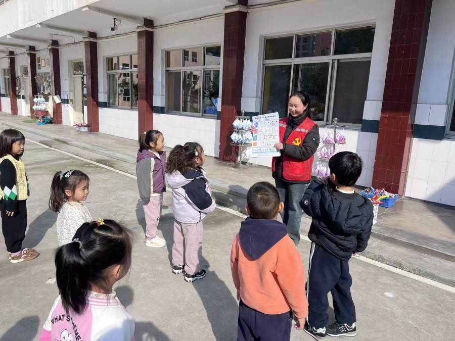 活动伊始,志愿者们化身“环保老师”,结合幼儿认知特点,通过色彩鲜艳的宣传页,将可回收物、厨余垃圾、有害垃圾、其他垃圾的分类标准转化为浅显易懂的知识点。“苹果核宝宝该回哪个家呀?”“废旧电池是危险的小怪兽,要放进红色垃圾桶哦!”志愿者用提问互动的方式,吸引了孩子们的兴趣。“老师,这个塑料瓶是蓝色的家!”孩子们举着道具兴奋地喊道,在志愿者的指导下准确投放。针对投放错误的情况,志愿者耐心讲解,用生动形象的比喻帮助孩子们理解。活动最后,孩子们跟着志愿者一起念起垃圾分类儿歌,将环保理念牢记心间。
