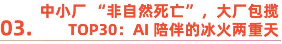 客观原因在于,无论是AI产品还是专精的AI陪伴类产品,都呈现出“唯大厂论”,国内的创新公司和中小厂集中出现持续性不足的问题。