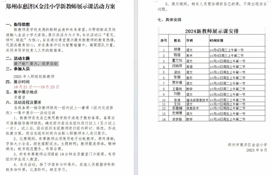 秋色宜人,正是成长好时节。为推动课堂教学创新,助力新入职教师专业发展,郑州市惠济区金洼小学于2025年10月21日正式启动了新教师课堂教学展示活动。