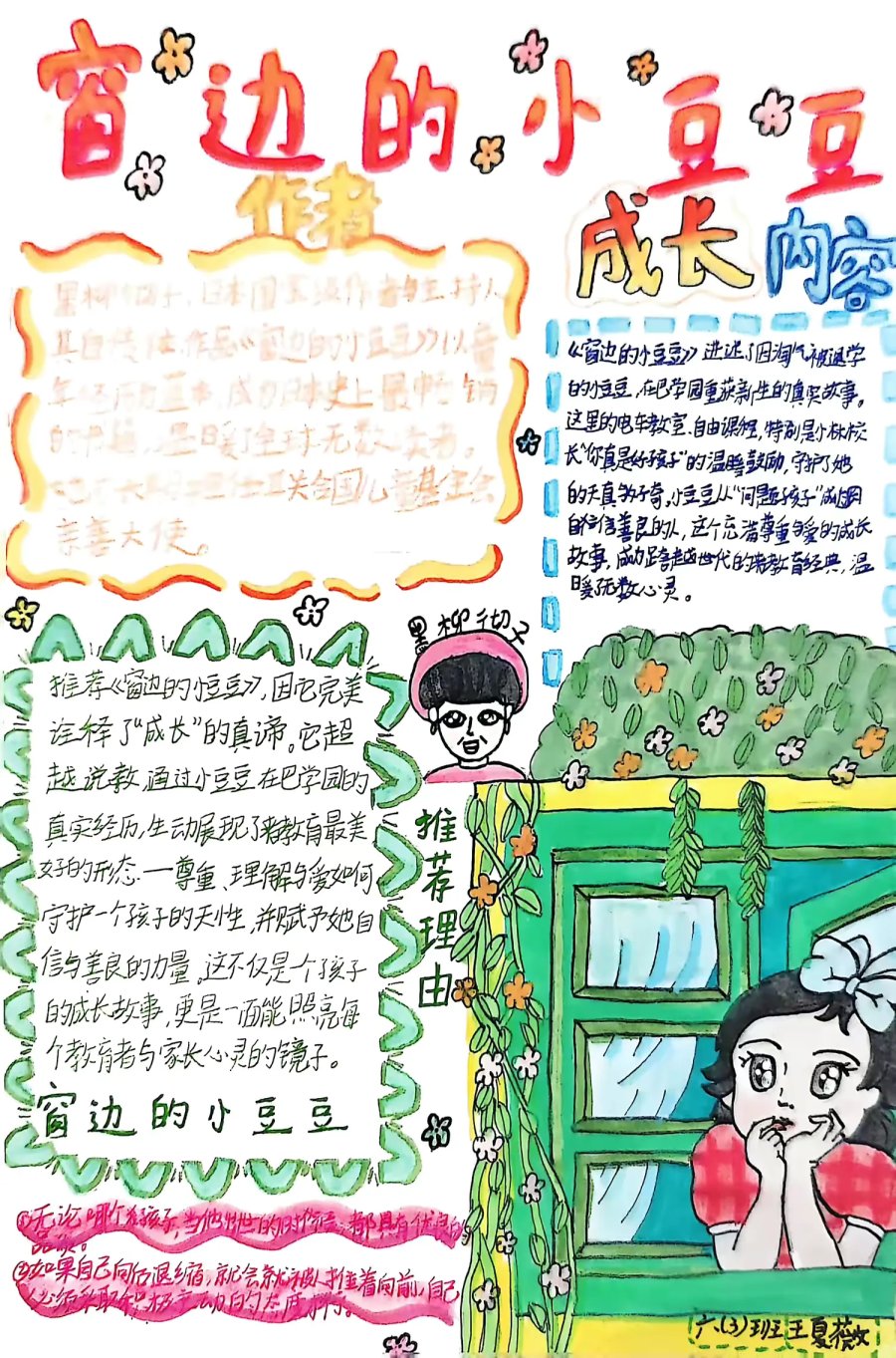 《窗边的小豆豆》成为孩子们共读的经典,他们通过手抄报描绘小豆豆的成长轨迹,在童趣表达中感悟尊重与关爱的力量,让教育的温暖悄然扎根心田。