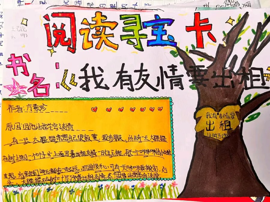 “阅读寻宝卡”与“寻宝图”相映成趣,将阅读任务转化为趣味探险,激发学生的参与热情,让读书变成一场充满挑战与发现的旅程。
