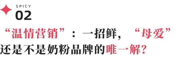 当飞鹤聚焦母爱这一命题之时,竞争对手在做更精细化的深挖,包括女性从孕妈到宝妈的成长过程、母亲育儿过程中的合作伙伴、等等,调动出年轻父母更丰富、深层的感情,与之完成深度的情感绑定。