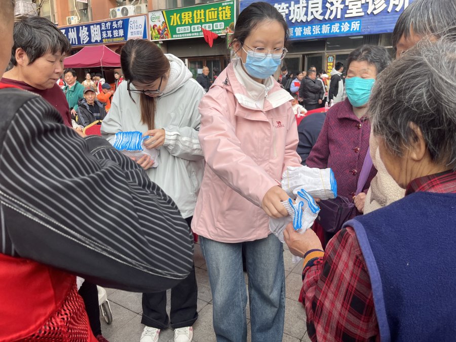 在主会场,精心熬制的重阳节专属养生粥,添加了红枣、桂圆等滋补食材,由志愿者和嘉宾们恭敬地奉送到到场老人手中。同时,“健康守护”义诊区前排起了长队,医护人员耐心为老人们测量血压、血糖,提供健康咨询。“时光留影”拍照区也充满了欢声笑语,老人们在家人的陪伴下,在重阳主题背景板前留下了一张张灿烂的笑脸,现场打印的照片成为他们珍贵的节日纪念。此外,满载着社会关爱的“爱心礼包”,梨子、黑全麦馒头、防滑袜、保暖手套等实用物品,一一发放到老人手中。