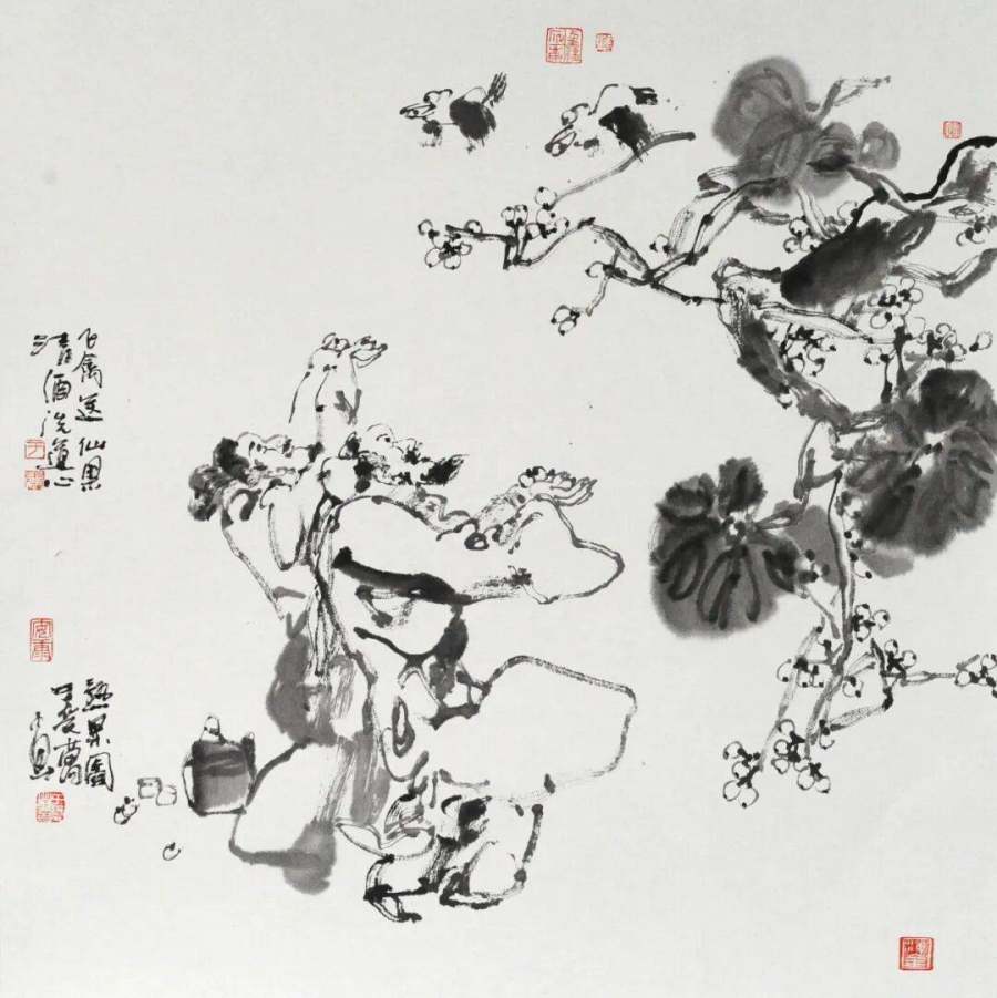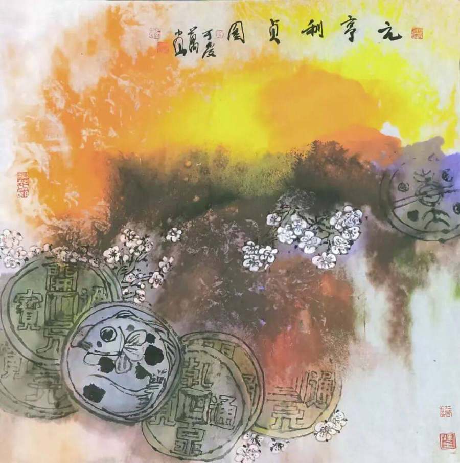 泼彩花鸟画-元亨利贞图
