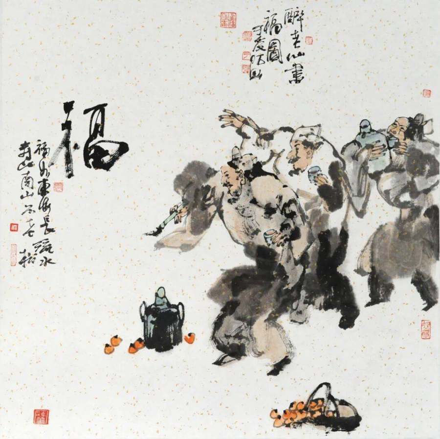 写意人物画-醉老仙书福图