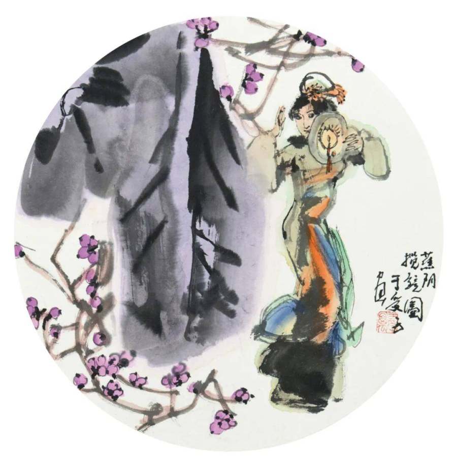 写意人物画-蕉阴揽镜图