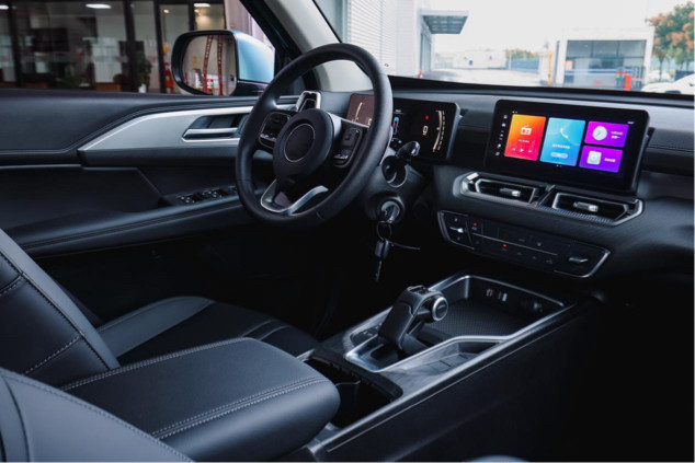 细节设计上,新车车姿抬高20mm,离地间隙最高达236mm,底盘通过性更强,车姿更威猛、更协调;低货台设计,货箱离地高度降低10mm,搬运货物更省力省时;更有同级唯一原厂货箱照明,无论是凌晨上货,还是晚市装卸运输,都保证货箱内清晰明亮,让装卸更安全高效。此外,自动挡全系标配10.25英寸高清大屏+倒车影像,流畅不卡顿;领航型搭载乘用车级车联网系统,可畅快体验智能语音、智能车控、智能导航、车载微信、抖音等服务功能。