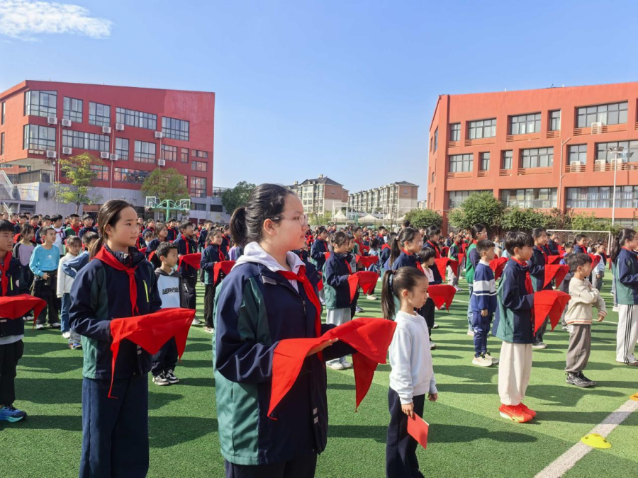 实践体验寓教于乐,激荡爱国情怀。除了静态的课堂讲授,如意湖办事处紧扣“强国复兴有我”主题,将全民国防教育与少先队建队相结合,借助庄严的升国旗仪式,开展教育实践活动。活动中,全体师生整齐列队,在雄壮的国歌声中凝视五星红旗冉冉升起,少先队员庄严宣誓,爱国热情在现场每个人心中激荡。随后进行的“国防在我心”国旗下演讲,从国旗意义讲到国防重要性,从革命先辈事迹讲到现代国防成就,引发了学子的强烈共鸣。