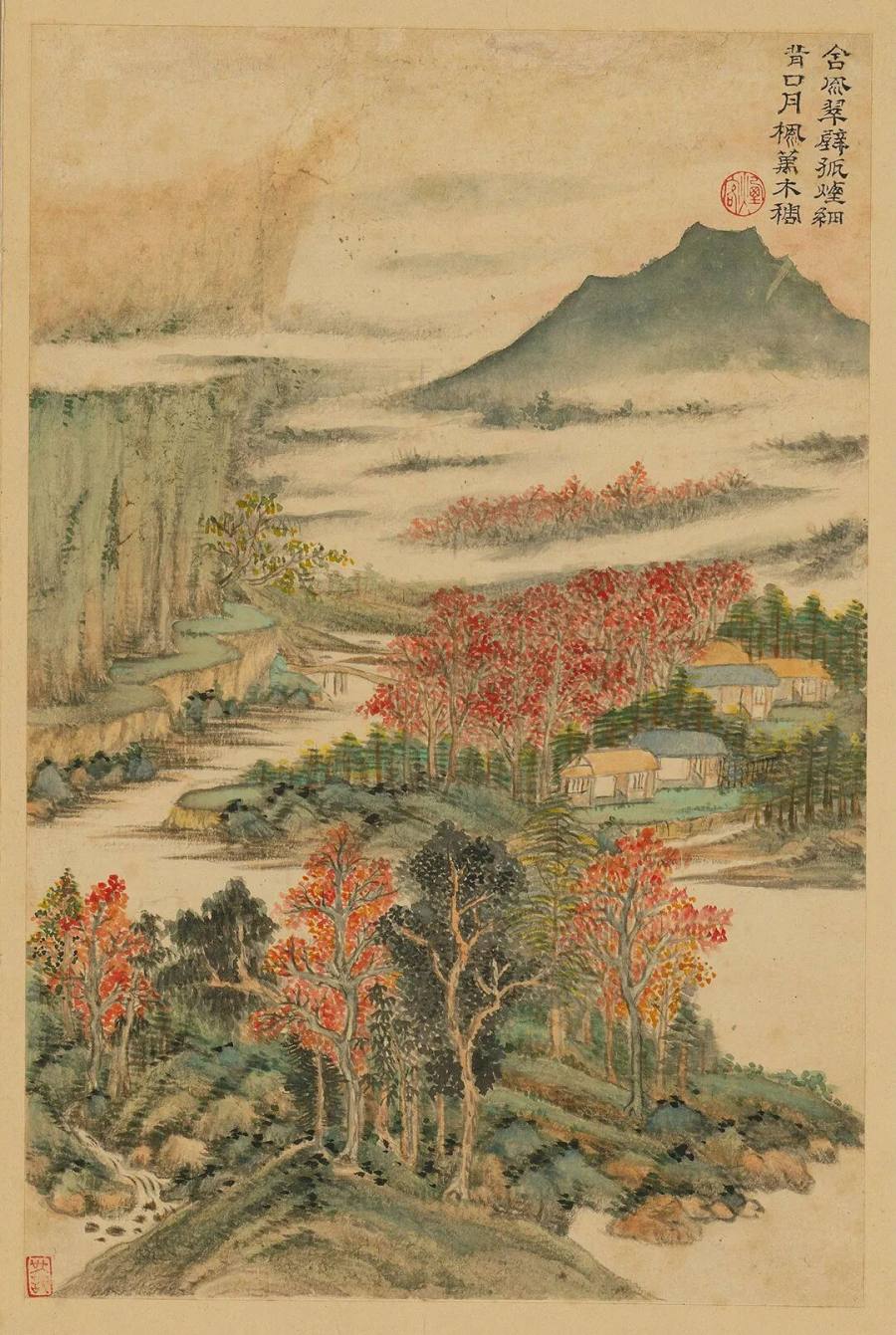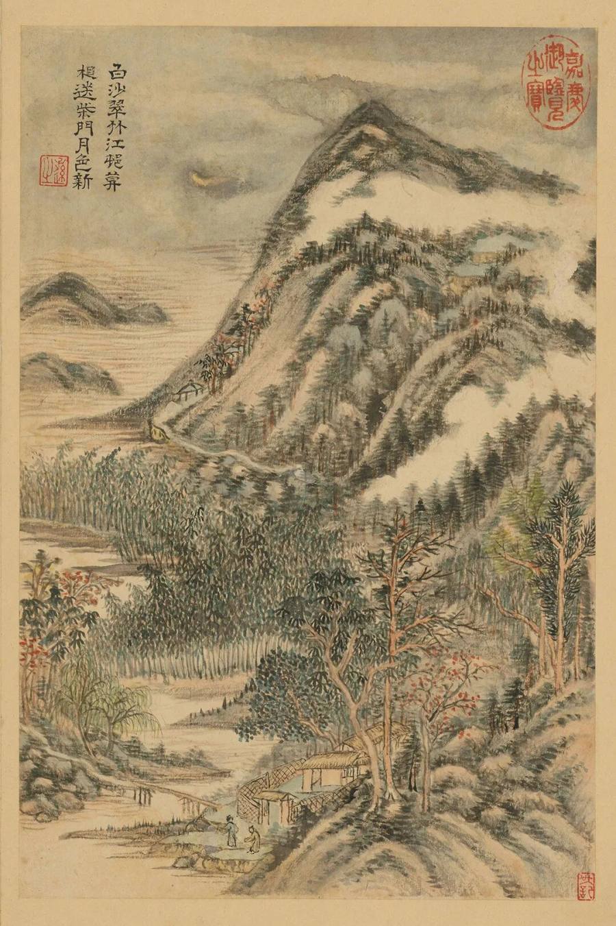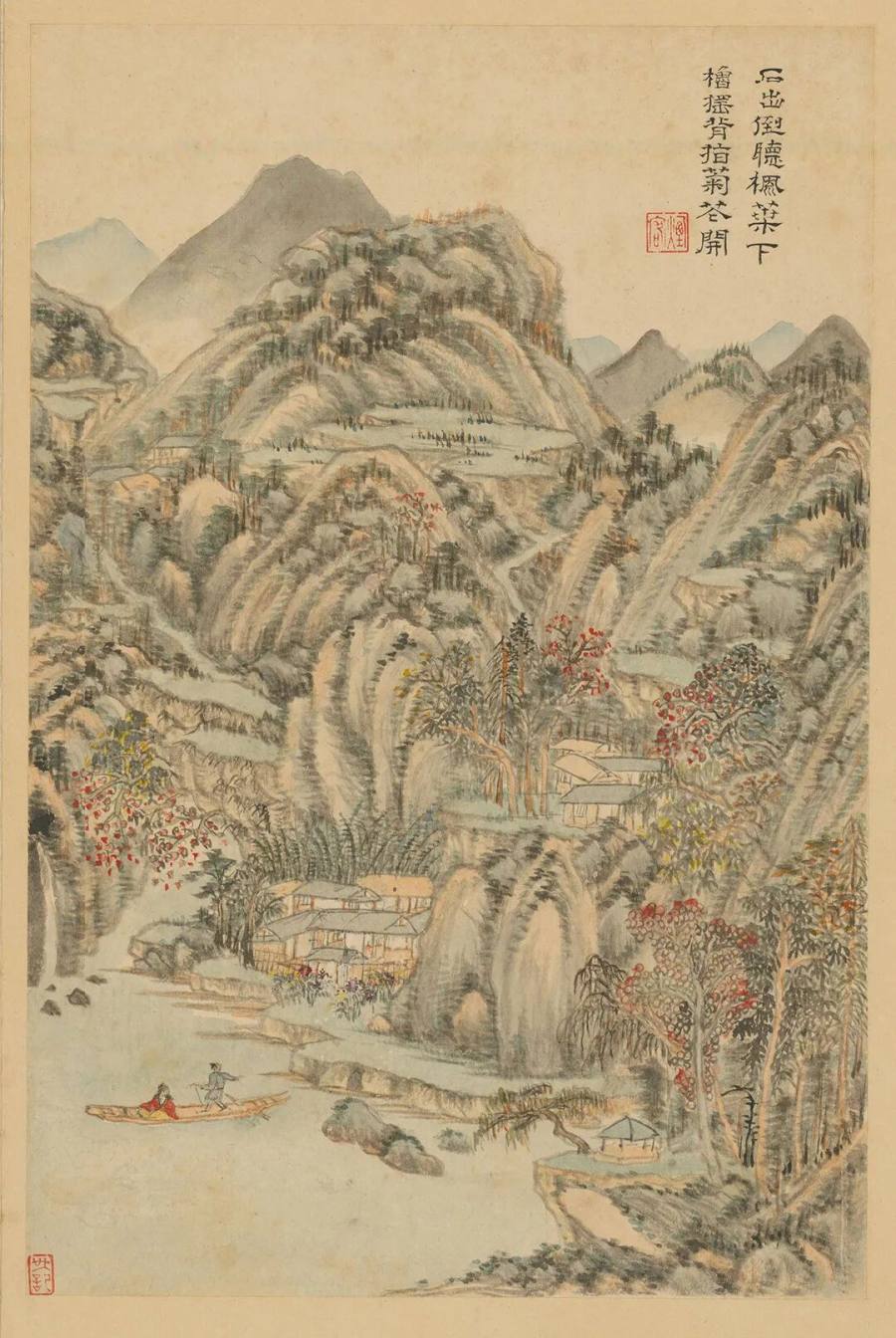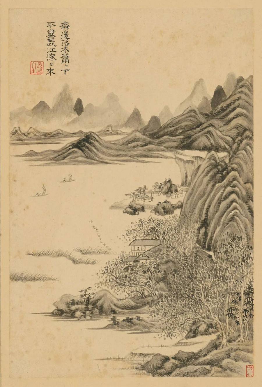 该图册系清康熙四年(1665)王时敏为外甥董旭咸绘杜甫诗意山水,每开上均有画家书杜甫七言诗一句,王时敏时年七十四岁。杜甫为唐代著名诗人,他不仅有大量的论画诗传世,其山水诗对后世山水画亦有深远影响。