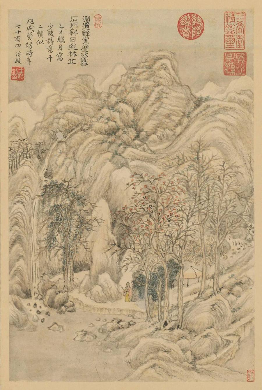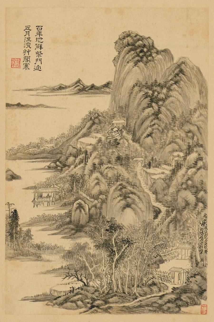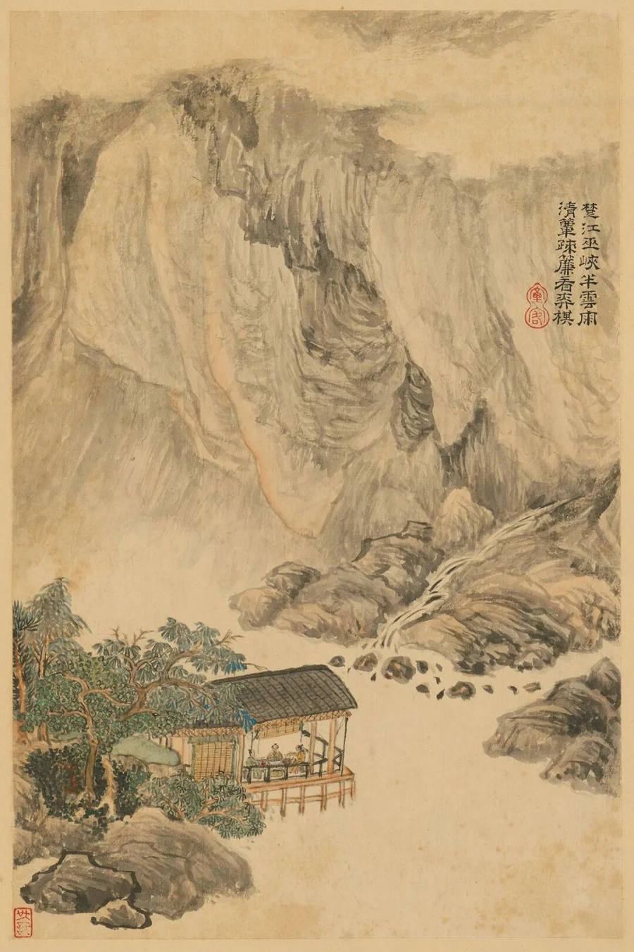 该图册系清康熙四年(1665)王时敏为外甥董旭咸绘杜甫诗意山水,每开上均有画家书杜甫七言诗一句,王时敏时年七十四岁。杜甫为唐代著名诗人,他不仅有大量的论画诗传世,其山水诗对后世山水画亦有深远影响。