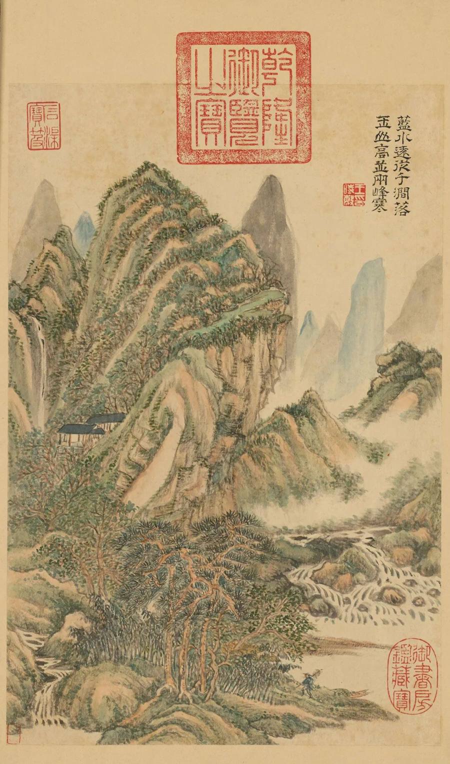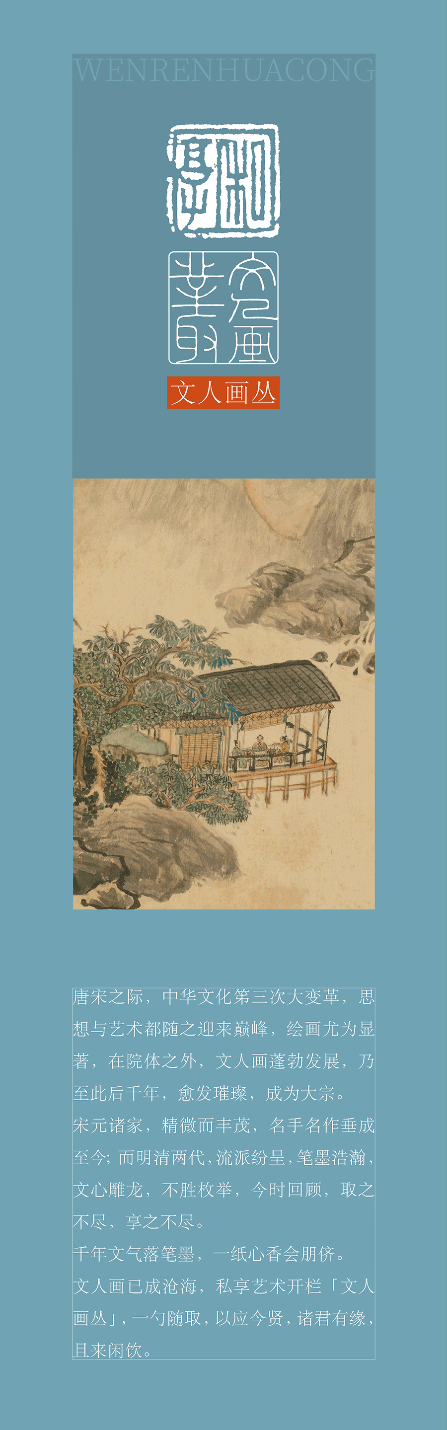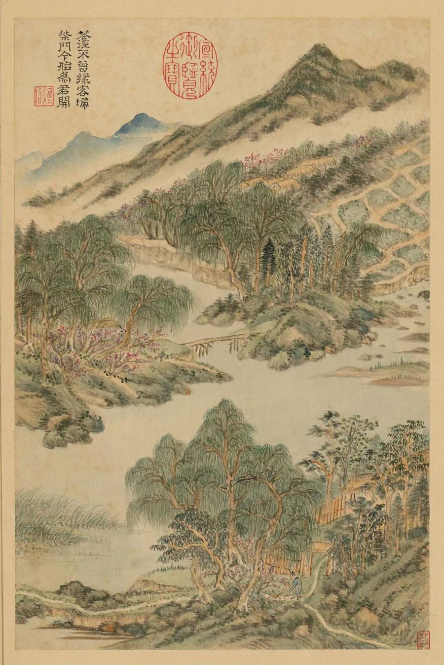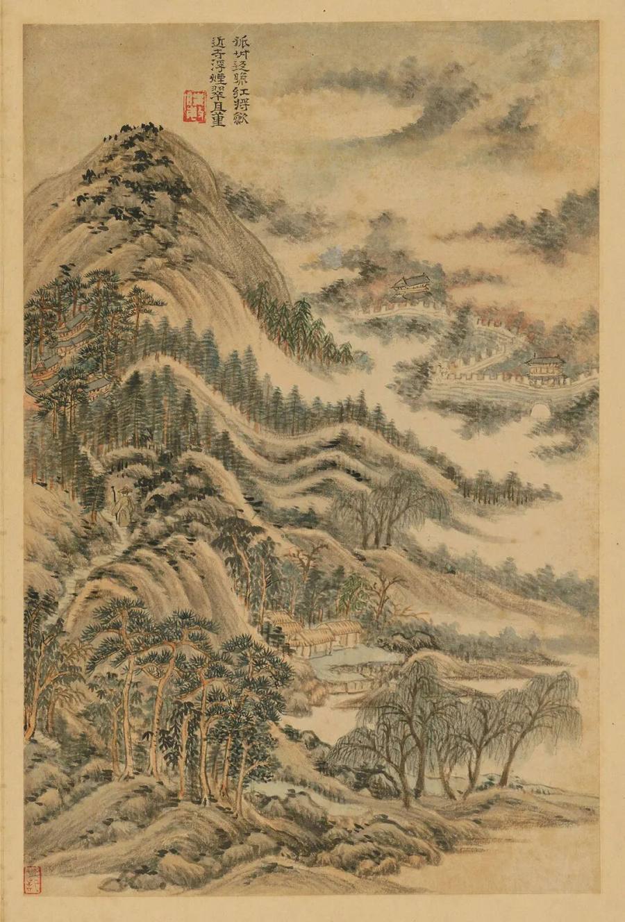 该图册系清康熙四年(1665)王时敏为外甥董旭咸绘杜甫诗意山水,每开上均有画家书杜甫七言诗一句,王时敏时年七十四岁。杜甫为唐代著名诗人,他不仅有大量的论画诗传世,其山水诗对后世山水画亦有深远影响。