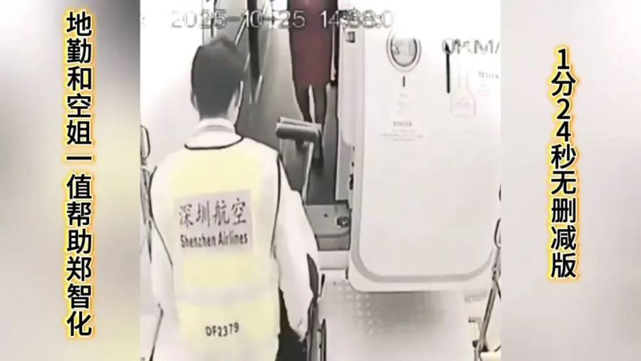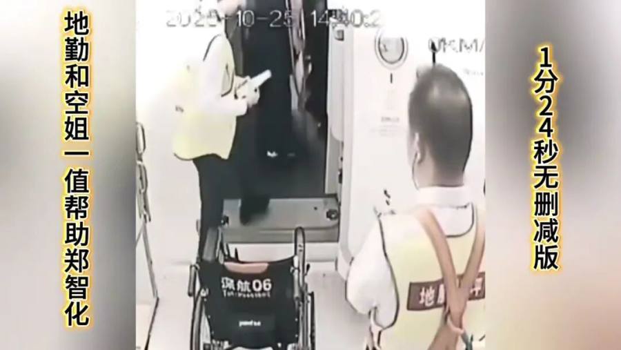 然而,视频里并不存在郑智化描述的“连滚带爬进飞机”,更不存在所有工作人员“冷眼旁观”情况。