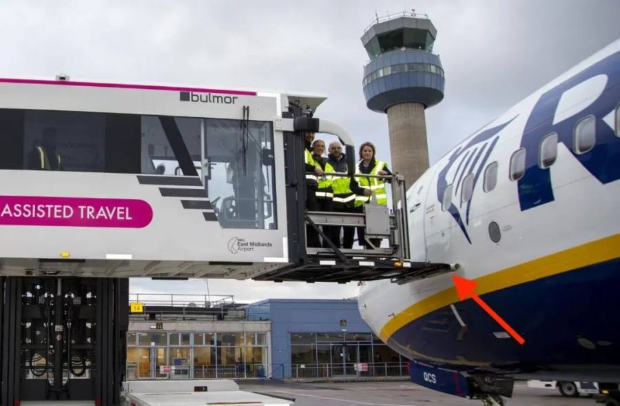 如果如果升降车再往上提高,很容易碰到开启后凸在外面的舱门。这种情况下,如果飞机或者升降车存在上下的位移,确实很容易出现刮碰,也容易给轮椅旅客造成安全隐患。