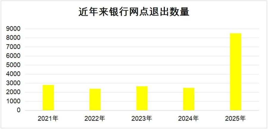 相关数据显示,2023年商业银行获准裁撤、退出的网点达2649家,2024年这一数字略有回落至2483家,2025年再度迎来高峰。