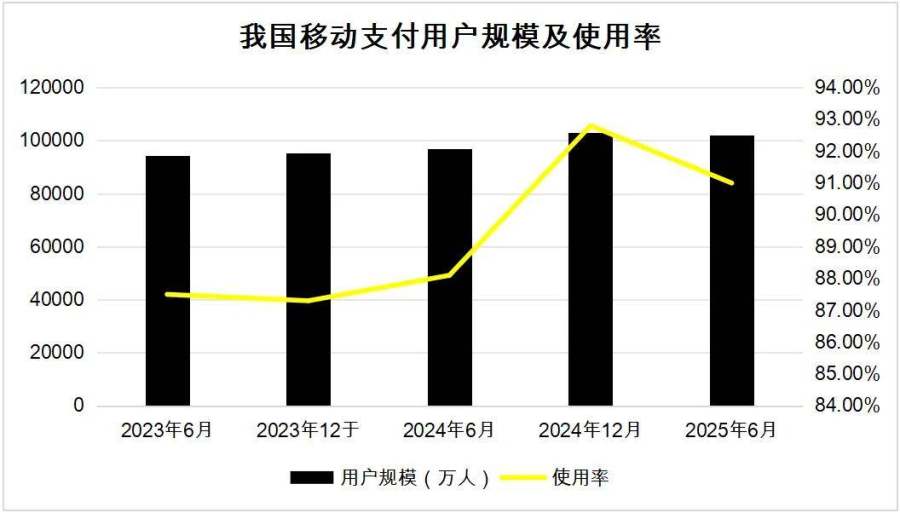 截至2025年6月,我国移动支付用户规模达10.22亿人,占网民整体的91.0%;个人手机银行、企业网银用户比例达88%,转账、理财等高频业务线上普及率超90%,线下客流量近5年下降60%。