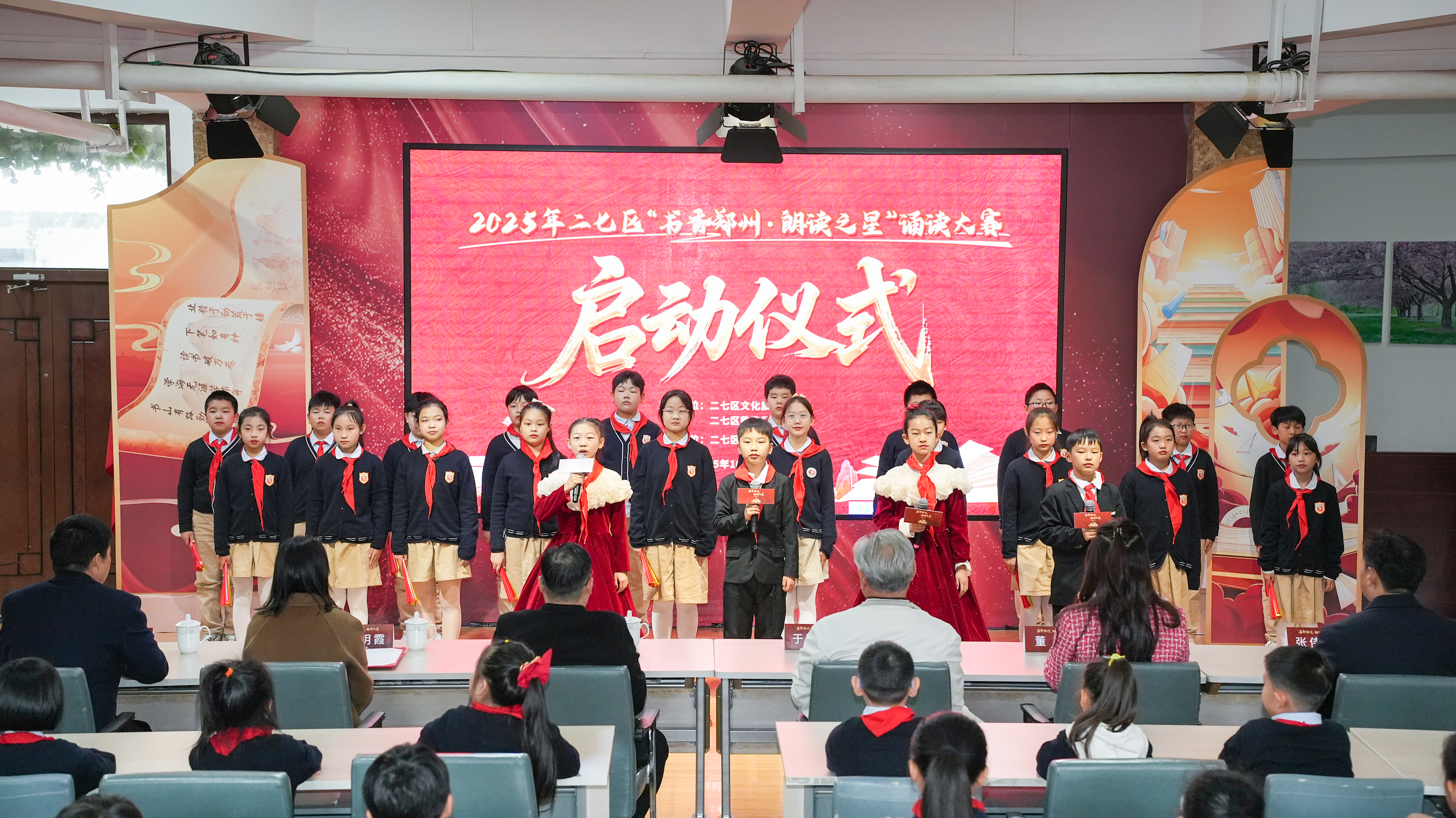 10月27日上午,由二七区文化旅游体育局、二七区教育局联合主办,二七区公共文化中心承办的2025年二七区“书香郑州•朗读之星”诵读大赛启动仪式在兴华小学举行。此次活动紧扣“书香社会”建设战略部署,以朗诵为载体,旨在引导辖区广大少年儿童亲近中华经典,提升语言素养与审美能力,展现新时代学子朝气蓬勃的精神风貌。