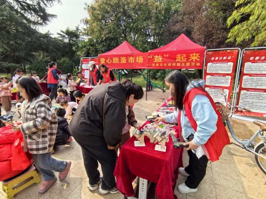 昨日,一场充满温情的爱心义卖活动在大桥局文化广场内暖心上演。本次活动是金水区慈善总会主办的“慈善文化进校园”系列活动之一,由心豫见社会工作服务中心具体承办,旨在通过社区实践,在青少年中传播慈善,让慈善落地。活动当天,“书香暖站”“爱心小屋”“暖冬小栈”的小“掌柜们”纷纷拿出自己心爱的二手玩具、阅读过的课外图书前来参与。