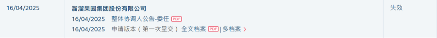 溜溜梅母公司溜溜果园集团股份有限公司(以下简称“溜溜果园”)于2025年4月16日所递交的港股招股书满6个月,于10月16日正式失效。