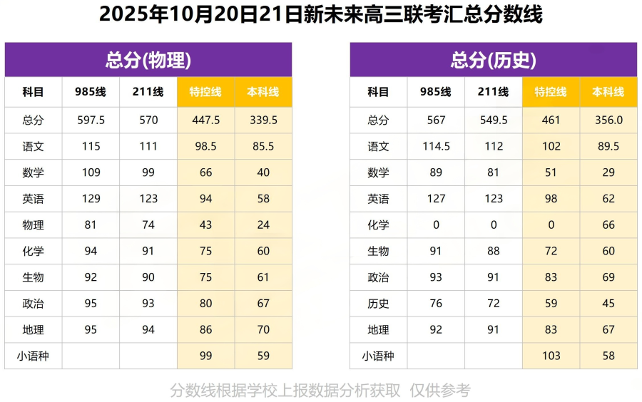【联考数据】2025年10月20日高三年级新未来联考分数线与分段表