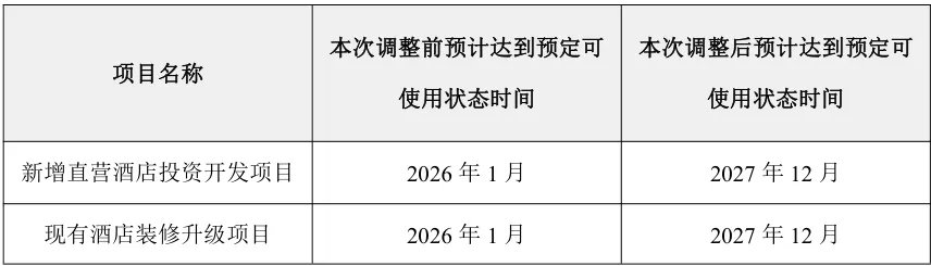具体来说,决定将“新增直营酒店投资开发项目”及“现有酒店装修升级项目”达到预定可使用状态日期延期至2027年12月。