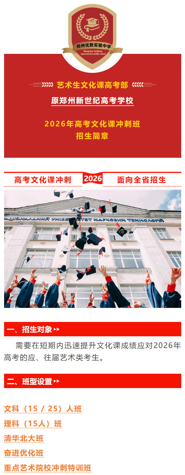 2026艺考文化课战鼓擂响,郑州优胜实验中学新世纪高考部新行动!