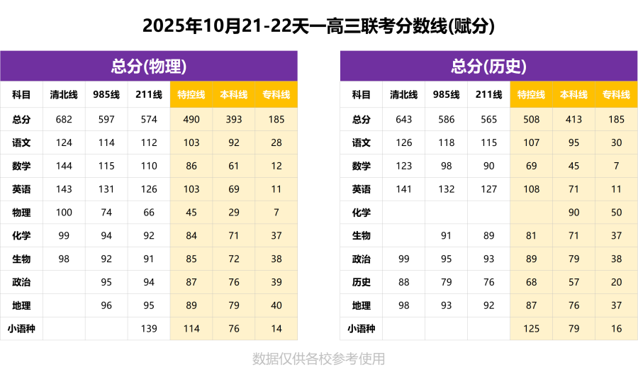 【联考数据】2025年10月21日高三年级天一联考分数线与分段表