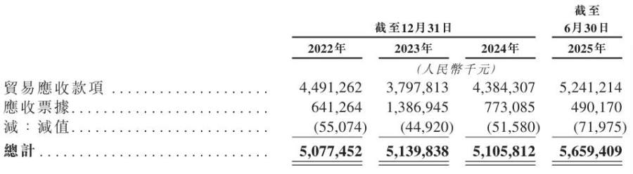 此外,中伟股份报告期各期末还存在50.78亿元、51.40亿元、51.06亿元和56.60亿元的贸易应收款项及应收票据,各期分别录得贸易应收款项减值5507.4万元、4492.0万元、5158.0万元和7197.5万元。