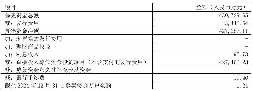 根据中伟股份披露的募集资金存放与使用情况报告,截至2024年末其首次公开发行股票和2021年度定增募集的资金已全部使用完毕,2022年度定增募集资金尚未使用的募集资金余额也仅剩1.21万元,不到五年便花光了百亿元资金。