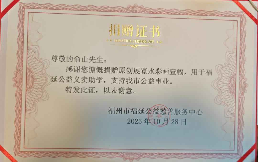 这份跨越国界的善举,正是俞山心系故土、情牵桑梓的生动缩影。无论是返乡举办画展分享艺术成果,还是与家乡亲友欢聚叙旧,他始终以实际行动践行着“月是故乡明”的侨胞情怀,如同诸多闽籍华侨一样,将对故土的情谊刻在血脉里。而在重阳这个承载着尊老、敬老传统的节日里,他的捐赠更让这份侨心与公益情怀相得益彰。