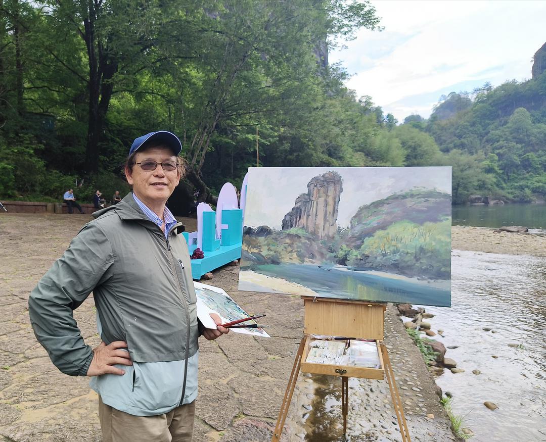 在职业领域,俞山成就斐然。他现任上海戏剧学院特聘教授(2023年起),曾任青岛上海戏剧学院美术学科主任,持续为国内艺术教育注入力量;同时,他还是美国壁画家协会唯一华裔会员、美国水彩画协会会员,曾任美国东方艺术研究会会长及美国艺文国际艺术总监,在国际艺术舞台上积极传播东方美学,推动中外艺术交流。其作品巧妙融合西方油画的表现力与水彩的透明层次,更蕴含中国文人画的诗意与空灵,兼具极高的艺术价值与收藏价值。此次捐赠的水彩山水画是他的精品之作,画面中山水相依、意境悠远,既展现了东方美学的独特魅力,更藏着他对故土的深切惦念,以及对家乡老人与困难群体的节日牵挂。