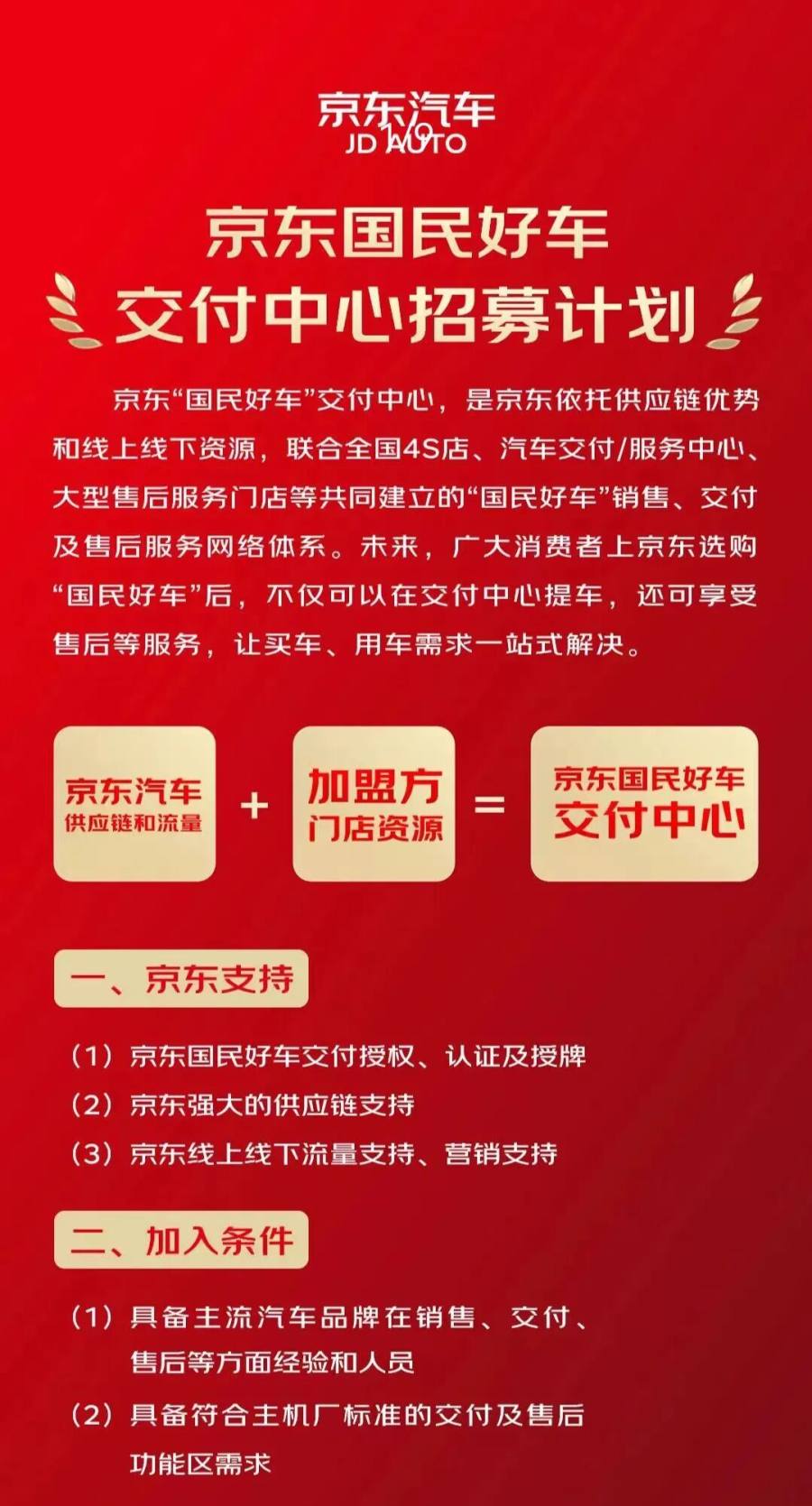 转机很快出现, 10 月 27 日京东给出了答案:宣布启动“国民好车”交付中心全国招募计划。这一动作不仅完美补上了京东独家售车的线下“缺口”,更与线上流量、营销优势形成强呼应,真正构建起“线上引流-线下交付售后”的完整闭环。