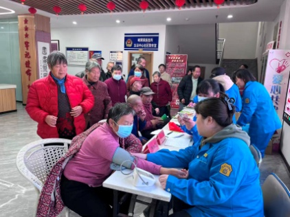 来自镇卫生院的医生带来健康科普讲座,重点讲解了糖尿病、高血压等老年常见病的日常管理,以及秋冬季节防跌倒、合理膳食的健康知识,现场示范简单易行的居家锻炼动作,受到老人们的热烈欢迎。在义诊环节,医生们为老人免费测量血压、血糖,细致问诊并给出个性化诊疗建议,同时提醒用药注意事项,让老人足不出社区就能享受到专业医疗服务。