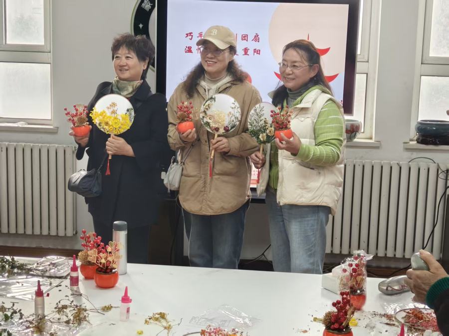 【西流湖街道民政服务站】巧手凝思制团扇,温情满溢庆重阳