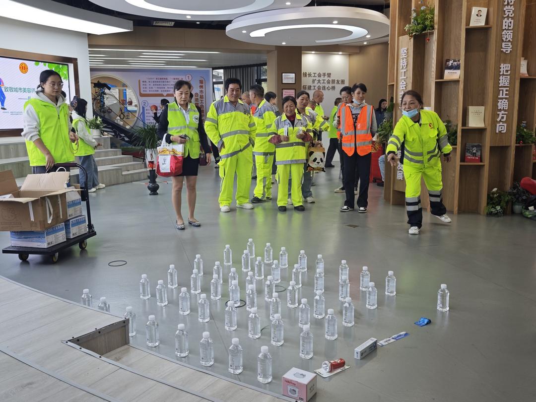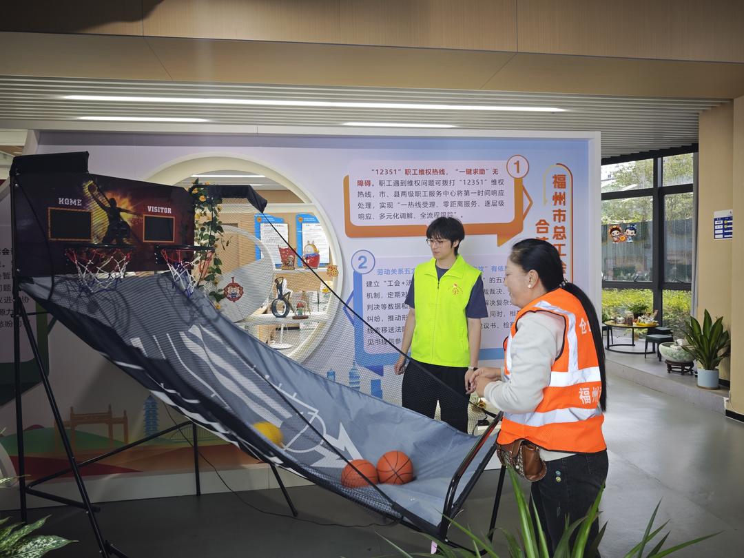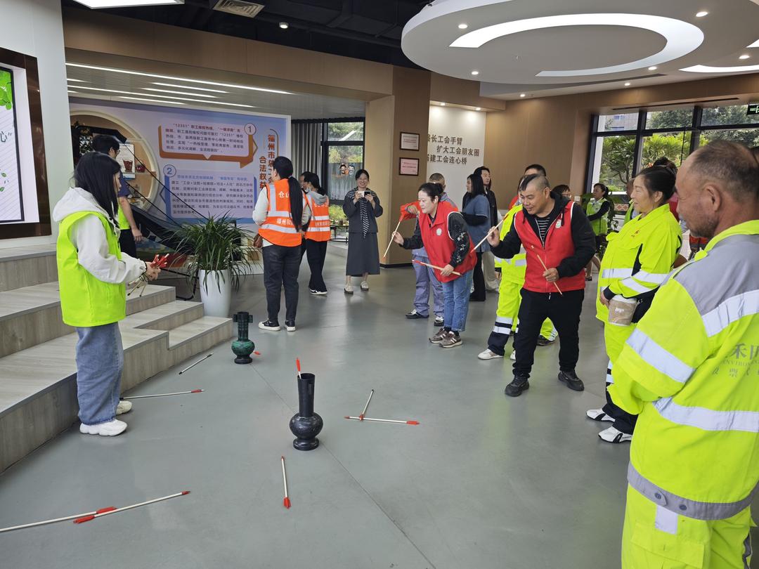 除了实用的健康服务,现场的趣味互动环节也让气氛愈发热烈。志愿者们精心准备了套圈、篮球等简单易操作的趣味运动,邀请环卫工人参与。大家放下手中的工具,积极投入到游戏中,套圈成功时的欢呼、投篮命中后的掌声此起彼伏,现场充满了欢声笑语,平日里的疲惫在轻松的氛围中渐渐消散。