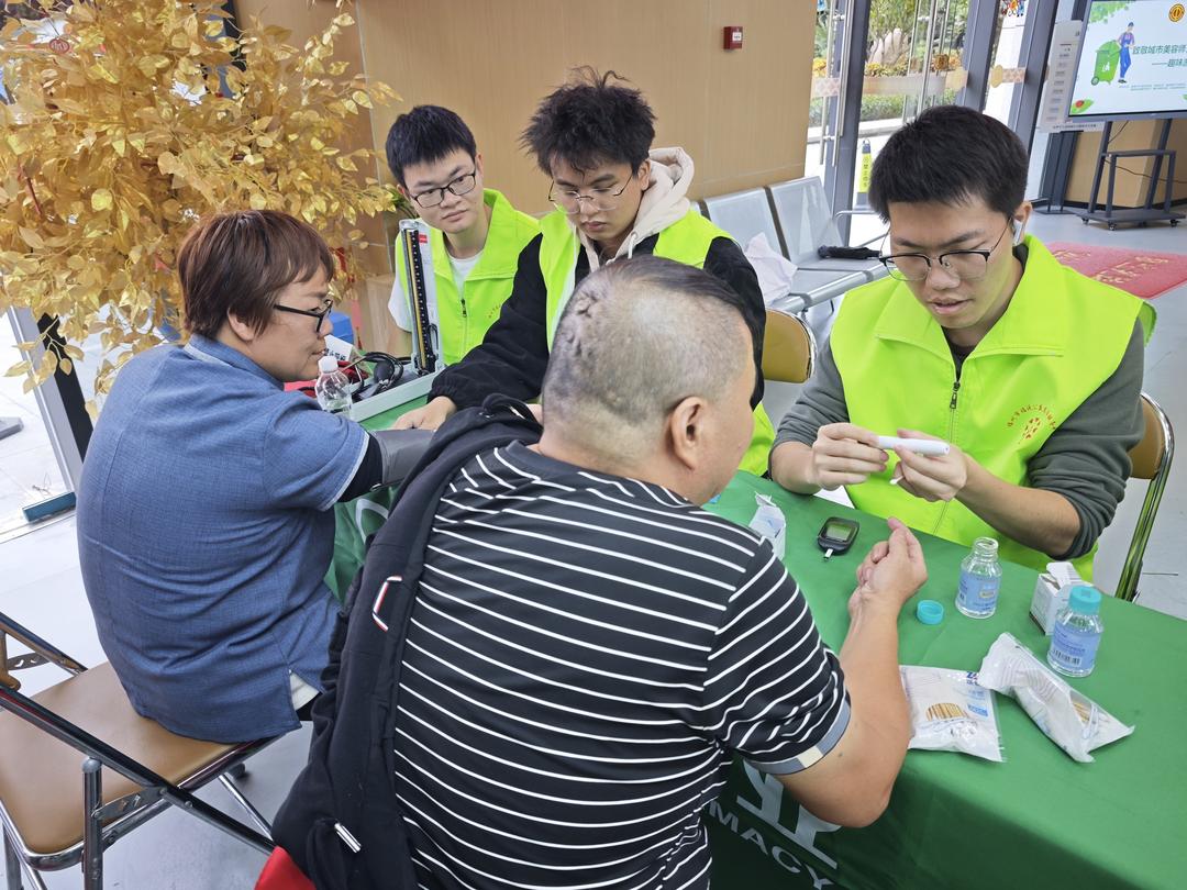 活动现场,健康服务专区最受环卫工人关注。志愿者与千金药业工作人员默契配合,耐心为每一位到场的环卫工人测血糖、量血压,细致记录健康数据,并结合检测结果给出饮食、作息等方面的健康建议。“平时忙得没时间去医院,今天在家门口就能免费检查,还能听专业人士讲健康知识,太贴心了!”刚测完血压的环卫工人王师傅拿着健康记录单,脸上满是笑容。