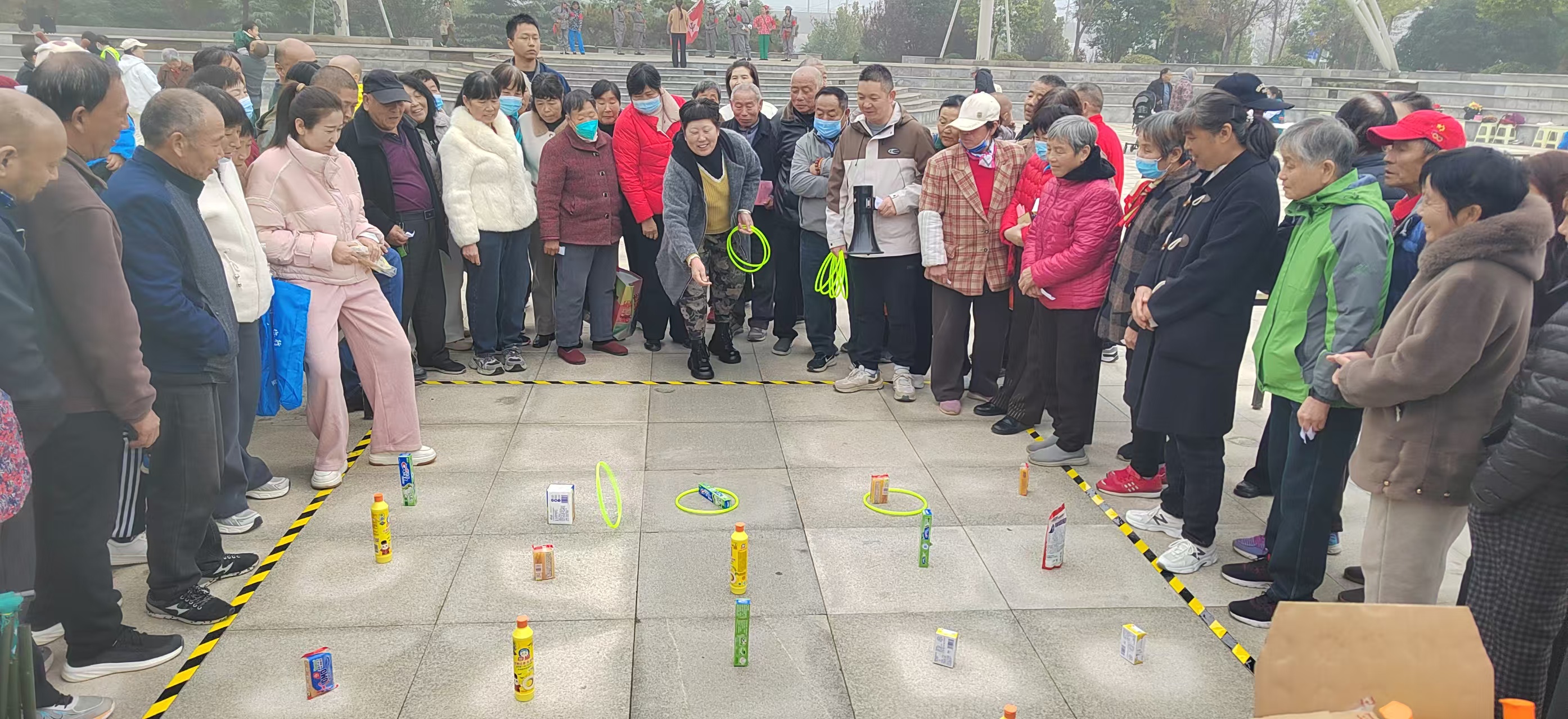 一旁的趣味活动区更是欢声不断,套圈游戏简单有趣又安全,参与者不仅能体验游戏的快乐,还能获得牙膏、洗衣液等实用纪念品,个个笑逐颜开。“节目好看,活动好玩,服务也贴心,还有奖品,这重阳节过得比过年还高兴!”一位老人的感慨道出了大家的心声。