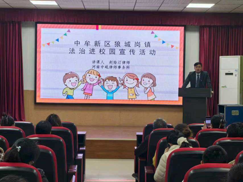 为进一步增强狼城岗镇小学学生的法治意识和自我保护能力,2025年10月24日上午,中牟新区狼城岗镇司法所联合镇综治办、镇小学,特别邀请河南中砥律师事务所赵焓汀律师开展“法治进校园”法律宣讲活动,为该校师生及家长带来一堂生动且实用的法治课。