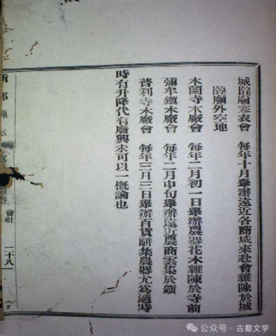 《新都县木兰乡志》(1983年版)、《新都区木兰镇志》(2011年版),也做了大致相同的记载,所不同的是,会期费用由会首募集,会场设于木兰寺。主要为了纪念文昌帝君的诞辰。关于祭祀文昌帝君,道光《新都县志》有记载。