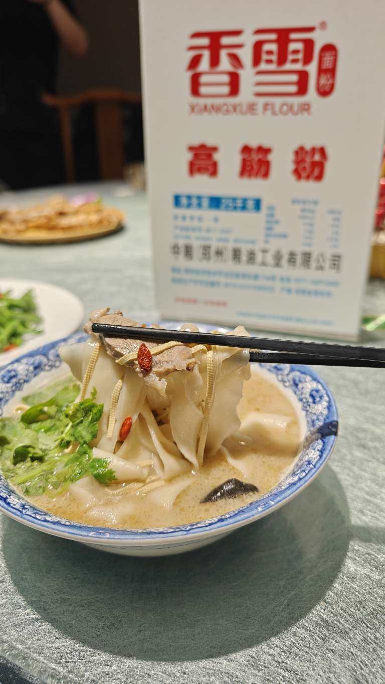 汤醇厚,面劲道,区别于其他家的面在于这个面弹性更突出。撒几粒枸杞突出“滋补”的身份——裕丰源的老味道,来自于10小时熬汤,面的三醒三揉,甚至面条的宽度和厚度都可以指定,这在全郑州都是独一份儿的~