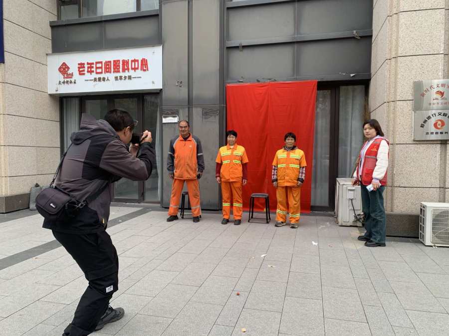 文峰街社区则联合郑州银行,别出心裁地组织了“定格时光,爱在重阳”主题拍照活动。活动以简洁而喜庆的红色背景板为景,为辖区老年人与辛勤的环卫工们定格幸福瞬间。镜头前,老人们慈祥羞涩的笑容与环卫工人们朴实喜悦的笑脸相互映衬,成为了重阳节里最温馨动人的画面。这些满载敬意的照片将被装裱后赠予参与者,成为一份独特的节日记忆。