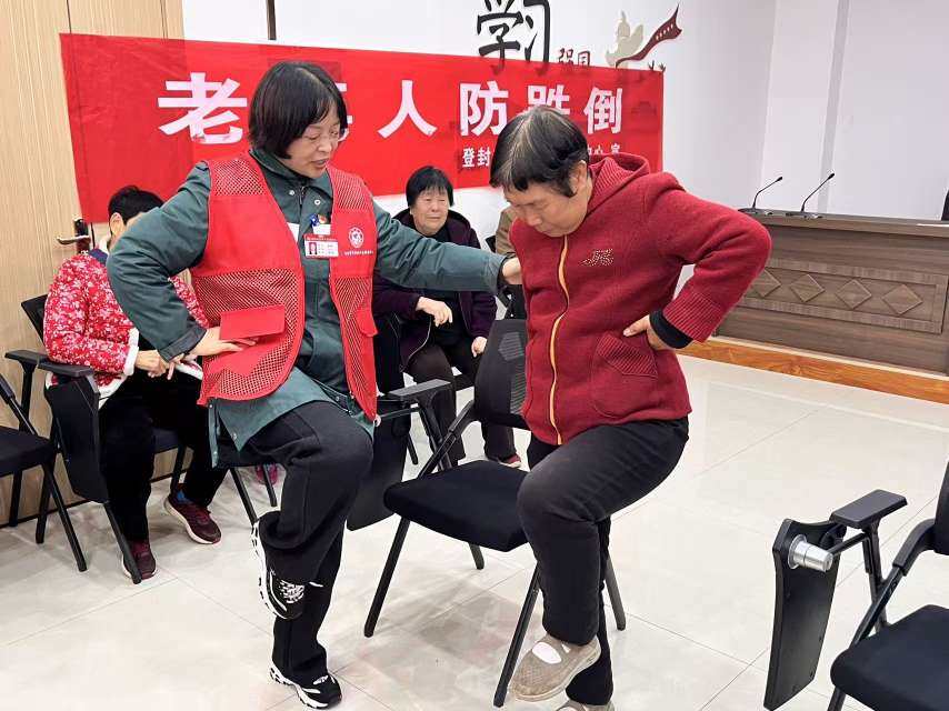 随后,志愿者们现场演示了辅助工具的正确使用方法,并带领老人们学习“防跌倒平衡操”,通过一对一的指导,有效提升了老人们的自我防护意识与能力。
