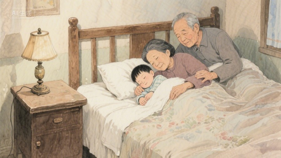 每日夜里,我都睡在姥姥与姥爷中间。天刚蒙蒙亮,姥爷要起床上班,一双温热的大手便覆上我的额头,来回摩挲着。他的食指轻轻刮过我的鼻梁,嘴里哼唱着:“凹斗脸,下雨不打伞;人家有伞,咱有咱的凹斗脸。”唱罢,自己先哈哈大笑起来。姥姥这时总会在一旁嗔怪:“还不快去上班,死老头子。”