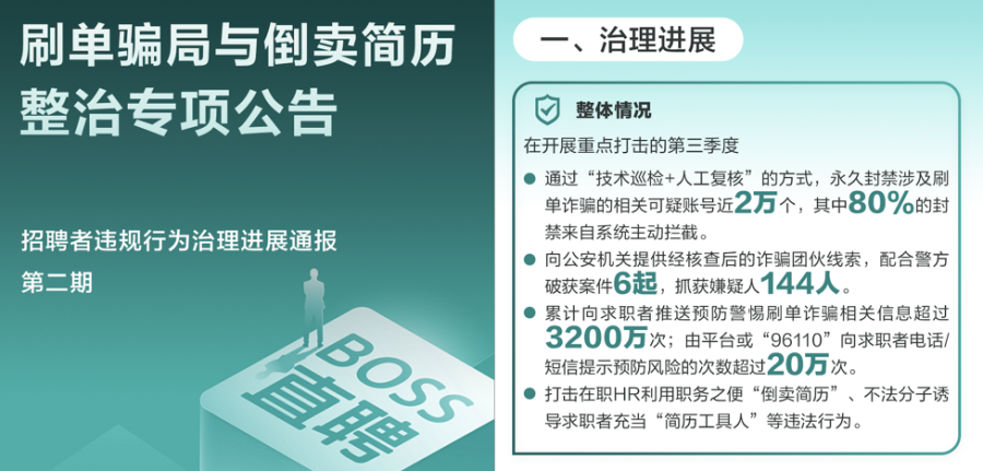 BOSS直聘公布治理进展,封禁涉刷单账号近2万个