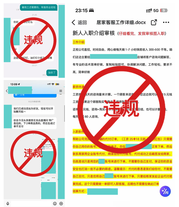 BOSS直聘相关负责人表示,黑灰产在发展“简历工具人”过程中,往往会使用“兼职”“副业”等具有较强的迷惑度的表述,求职者与招聘者切勿轻信。同时平台也会持续加强技术投入,保持高压打击力度。