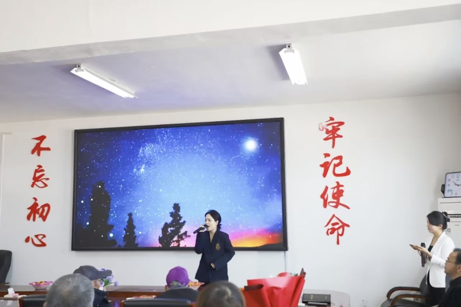 仪式上,郝亚坤、侯莎莎两位老师深情献唱,用悠扬的歌声表达了对前辈们的祝福与敬意,将现场气氛推向高潮。