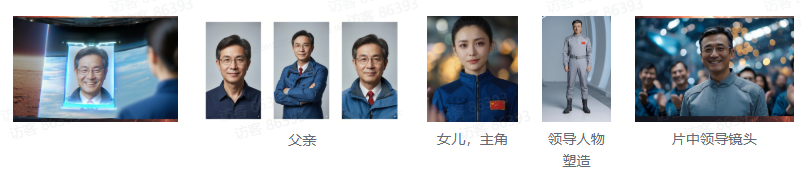 尽管最后的呈现中人物一致性上还有所欠缺,比如领导的形象在远景和近景中忽胖忽瘦,但影片中三个主要人物的辨识度较高:带有科学家气质的领导、慈爱的父亲以及勇敢坚毅的小林。据影伙工作室透露,片中父亲的形象并非凭空捏造,而是基于女儿的形象进行生成,尊重了人物形象塑造的基本逻辑。