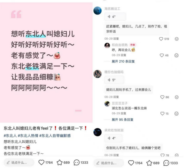 又有特色又一向乐得抽象的东北人都快被玩包浆了,一会儿排队喊“媳妇儿”,一会儿喊麦、唱二人转,这边喊东北人去哄人,那边叫东北人去骂人,还有看热闹不嫌事儿大的想听东北人念诗。