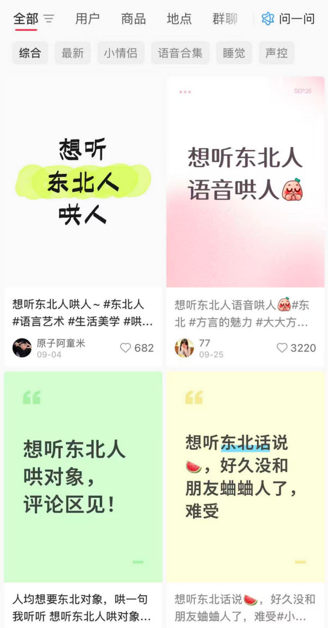 最近点开小红书,经常出现一些点赞只有十几个,评论却成百上千条的“点歌帖”。发帖人一句“进来唱两句”,评论区挤满了语音条,各种歌声此起彼伏,宛如一个即时响应的“互联网电子K歌房”。